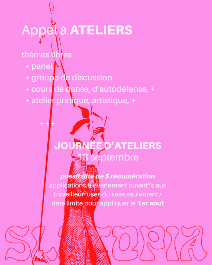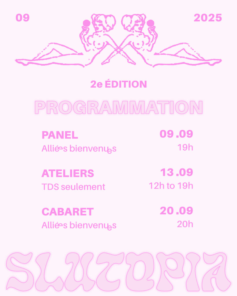 La deuxième édition de Slutopia a pour but de créer un espace de rassemblement afin de briser l’isolement propre à notre industrie. Le rassemblement sera l’occasion de discuter de nos conditions de travail, d’explorer les différentes réalités du milieu et de partager des stratégies pour renforcer notre sécurité collective. Slutopia est aussi un moment pour célébrer, créer et approfondir les liens qui nous unissent. Ensemble, nous désirons lutter contre la stigmatisation et reprendre le contrôle du narratif qui marginalise nos existences, en ouvrant un espace où l’on peut s’organiser politiquement.